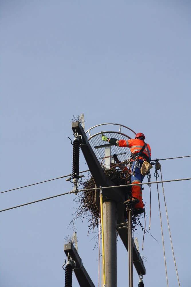 Von den Lebag-Männern wird viel Können und Wissen verlangt und viel Rücksicht auf Landbesitzer, auf bestehende Strukturen – und auf Störche. Denn wohin käme die Menschheit ohne Störche!