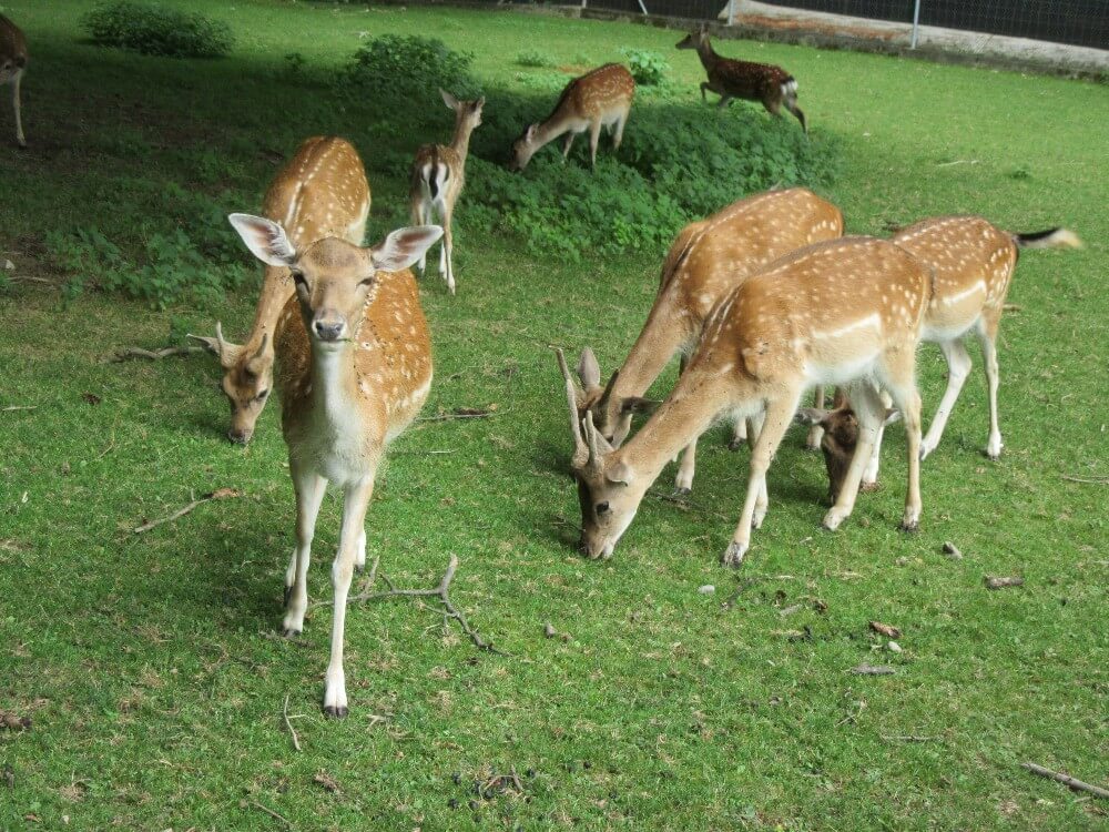 Nach zwei Kilometern erreichen Sie den Tierpark. Es ist ein Vergnügen, die Damwildherden zu beobachten, auch für die Kleinsten.