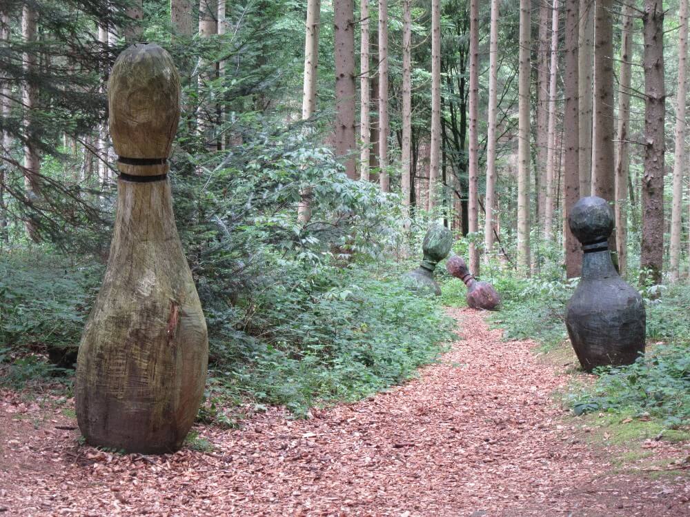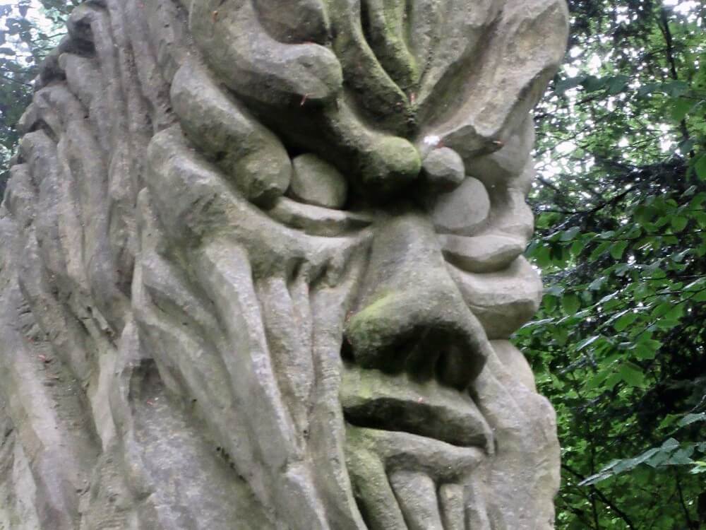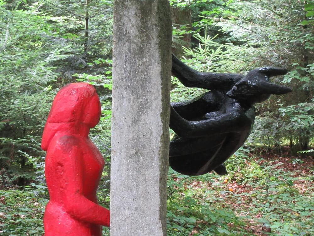 Nun biegen Sie links in den Freiämter Sagenweg ein. Schon nach wenigen Schritten treffen Sie auf einen der brennenden Männer. In Sandstein gehauen, mit leerem Blick. Weiter zum Topf, in dem die Hexe ihre Salbe zubereitete. Das Drachenbänkli. Die mächtigen Kegel. Die übergrossen Stiefel des gefürchteten Stifeliryters. Die drei Pilger, die mit abgeschlagenen Köpfen weiterwanderten. Und da hängt sogar die schwarze Gestalt des Teufels an einer steinernen Wand. Grauslich!