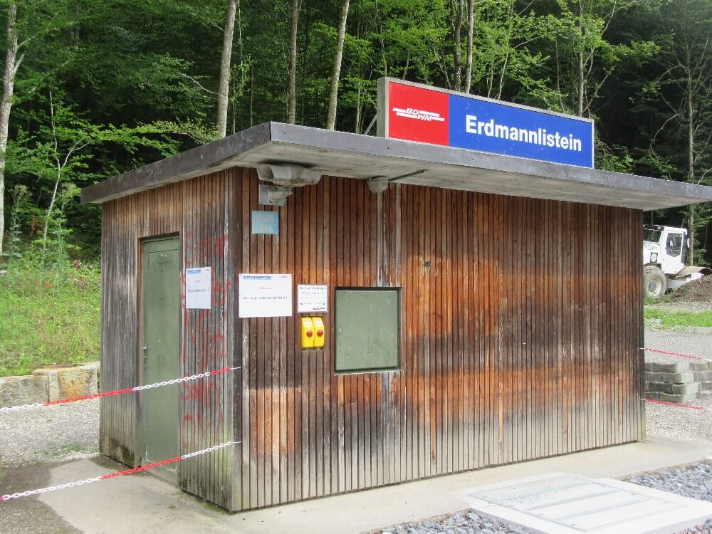 Bei der nahen Bahnstation «Erdmannlistein» (Halt auf Verlangen) besteigen Sie wieder einen Zug der BDWM und fahren zurück nach Wohlen.