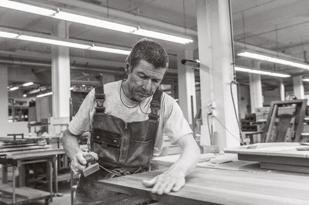 Und noch etwas: Jedes einzelne Möbelstück ist mit einem Laufzettel ausgestattet; jeder Produktionsschritt ist deklariert. Individualität und Transparenz. Je mehr Sie über Ihren Tisch wissen, desto stärker identifizieren Sie sich mit ihm. Er wird beinahe zum Familienmitglied, ist jedenfalls mehr als nur ein Möbel-«stück».