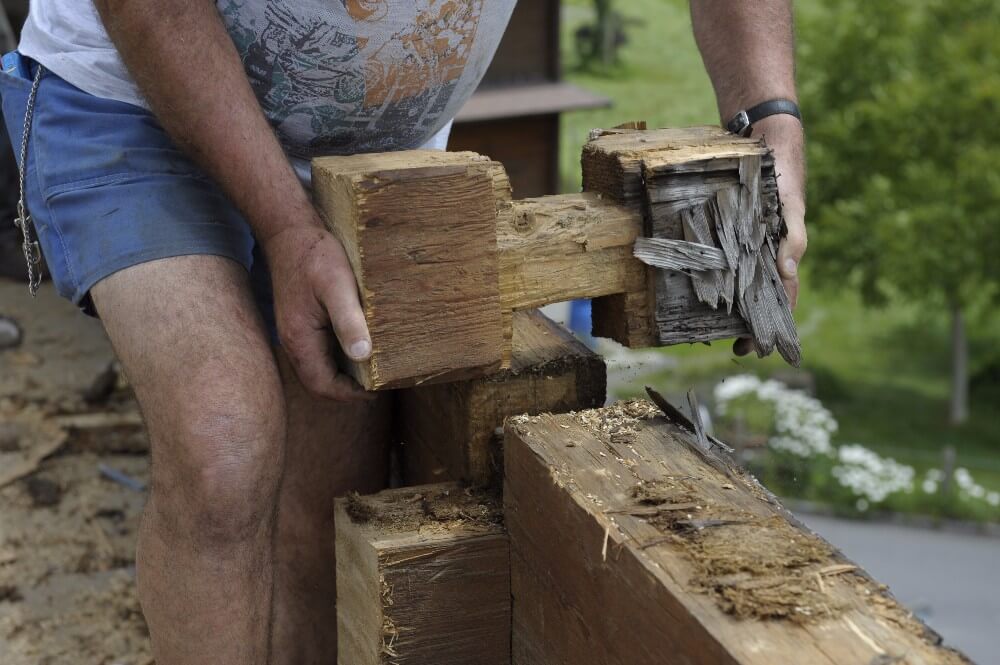 Der Fachmann erkennt, welche Balkenteile gesund sind und sich für die Weiterverarbeitung anbieten