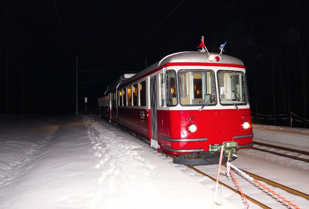 Sie haben schon richtig gelesen: Fondue «im Sebni», nicht «am 7ni». «Sebni» ist eine aus drei Wagenkasten bestehende Zugskomposition der BDWM. 1969 trat der Triebwagen seinen Dienst an. Den Namen «Sebni» aber erhielt er erst 2012. Nein, er musste nicht 43 Jahre lang als Namenloser, als Nobody auf die Piste. Vorher war er auf den Namen «Widen» getauft. Und die Technik-Freaks hatten die nüchterne Bezeichnung BDe 8/8 7 für ihn. Da tönt doch «Sebni» wesentlich sympathischer, beinahe zärtlich.